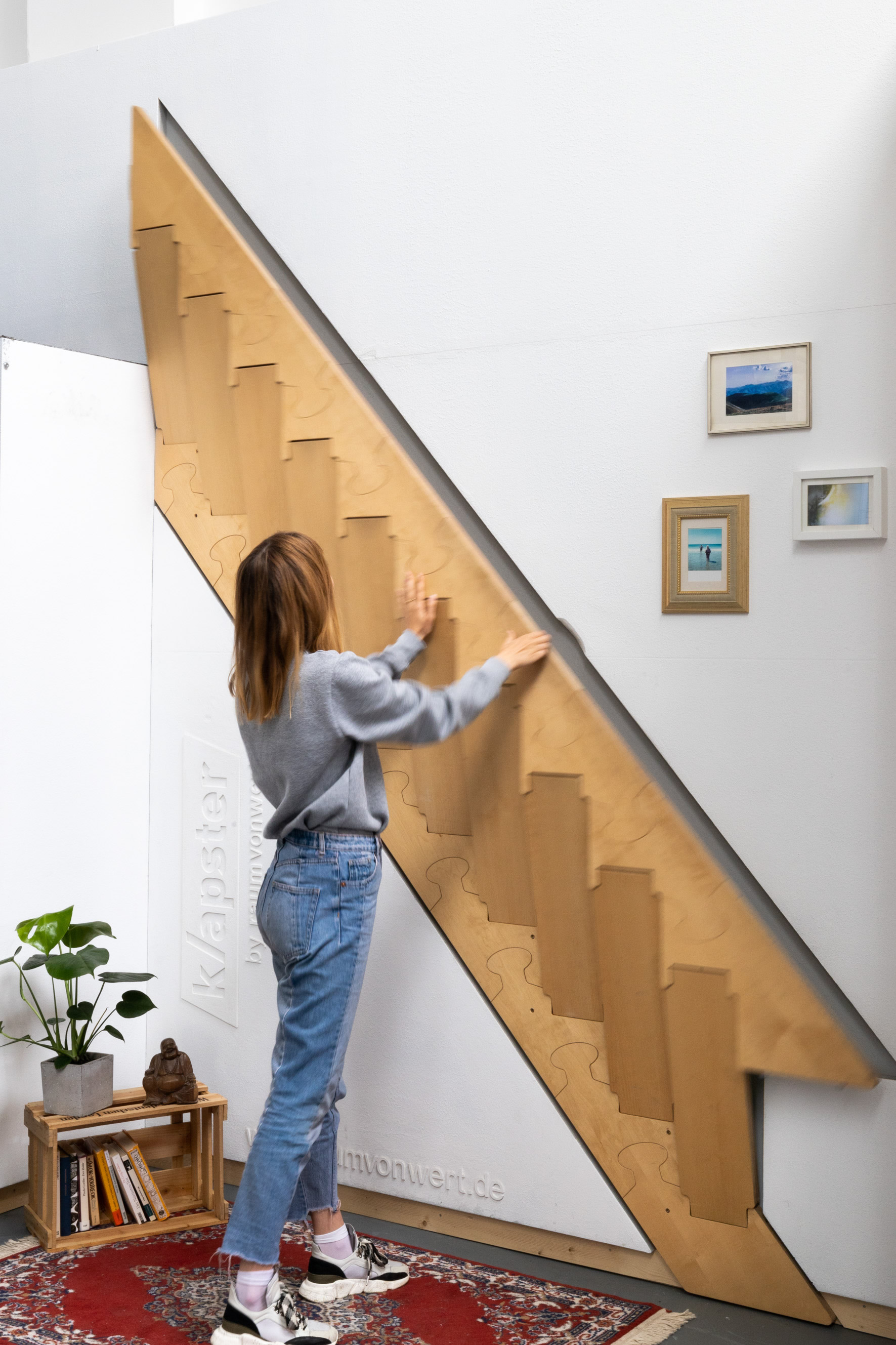 Klapster tar compact living till en helt ny nivå. Klapsters hopfällbara trappor integreras diskret i väggen och är enkla att fälla ut när de skall användas. Klapster har vunnit flera utmärkelser i Tyskland, bland annat årets trappinnovation 2019. Klapsters trappor är genomgående av mycket hög kvalité och upplevs enkla att installera samt använda. Klapsters trappor är robusta och säkra att gå i och garanterat ett blickfång.