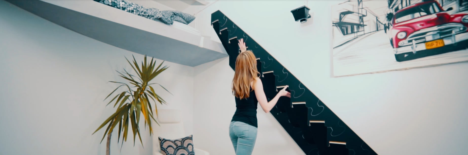 Klapsters hopfällbara trappa hjälper dig att maximera dina kvadratmeter. När kostnaden per m2 är extrem krävs det smart rumsplanering och compact living tänk. Multifunktionalitet och möjlighet att enkelt ta bort saker som inte används och snabbt byta mellan olika element efter behov symboliserar compact living. Där är Klapster trappor ett äss i rockärmen. Vid compact living är det oftast trångt och traditionellt har en trappa alltid varit i vägen. Fäll ut din trappa endast när du behöver den, annars sitter den som ett konstverk på din vägg. Låt en hopfällbar trappa maximera din compact living. Föredrar du en traditionell stege eller ett konstverk på väggen?